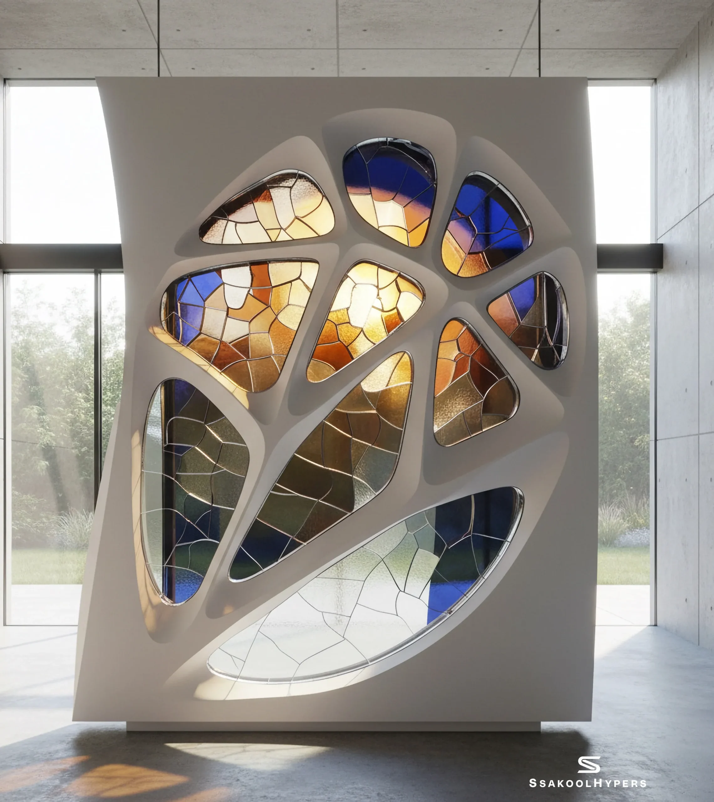 Ezek a különleges elemek – legyenek akár térelválasztók, falbetétek vagy nyílásszerű kompozíciók – egyszerre hatnak építészeti struktúraként és látványelemként.